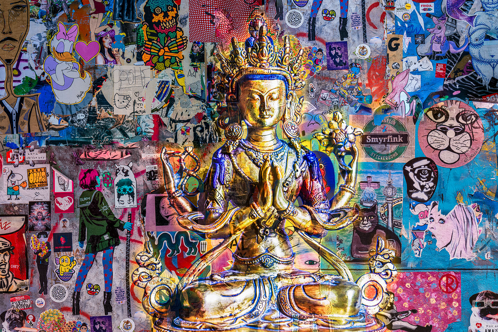 As I was already mastering Photoshop because of my cover art and books, and also had an enormous pool of photos, I began out of despair and necessity to randomly overlay two or three photos on top of each other. Then—boom! It happened. My photo art was born. I went crazy with it. Then came monumental photo compositing with 30 to 50 photo collages. The resonance was very rewarding, both creatively and financially, already at my first exhibition.